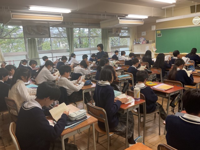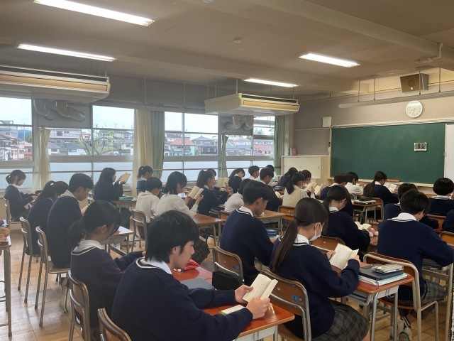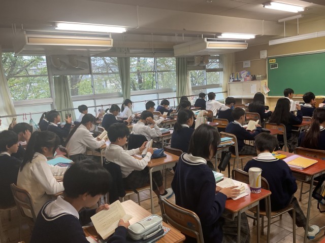 落ち着いて、1日がスタートできるよう、余裕を持って登校し、始業の準備に取りかかってください。写真は、今朝の朝読書の様子です。限られた時間ではありますが、読書に親しむ良い時間にもなっています。どの学年も、落ち着いて読書に取り組んでいました。