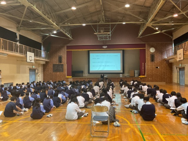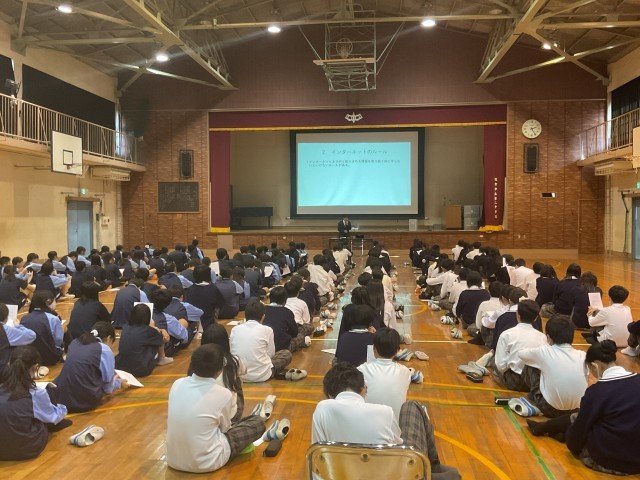 本日は、アディーレ法律事務所から弁護士の先生にお越しいただき、「SNSトラブルに巻き込まれないために」をテーマに1年生を対象に講演会がありました。インターネットの特徴や事例をあげてお話をいただきました。「言葉の暴力は、想像以上に人を傷つける。」とのお話もいただきました。
