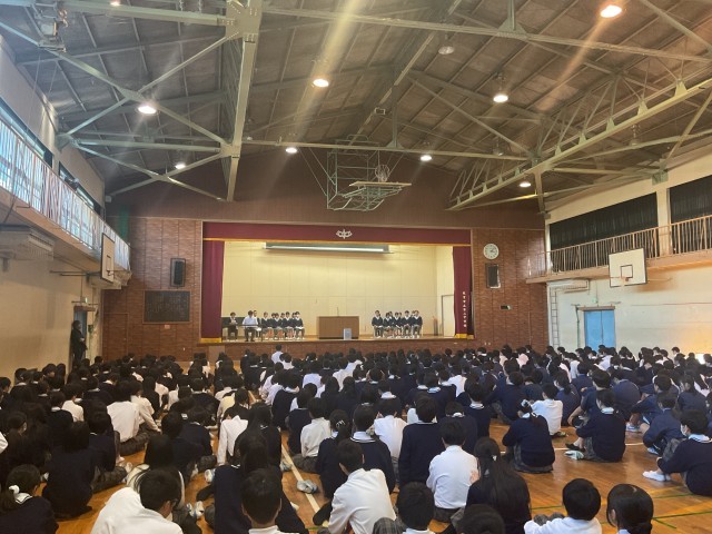 立候補者演説会、投票がありました。立候補者は皆、生徒会活動を支えたい、みんなが楽しい学校にしたい、など、これからの二中をもっと良い学校にするための想いを、はっきりと演説してくれました。聞いている人も、しっかり演説を聞いいました。体育館での演説会の後、教室で投票を行いました。選挙管理員の準備(公示、受付、演説会、投票)にしっかり取り組んでくれました。