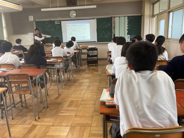 図形や角度について、ICTや、図を活用して理解を深めています。写真は3年生と2年生の先週の授業の様子です。