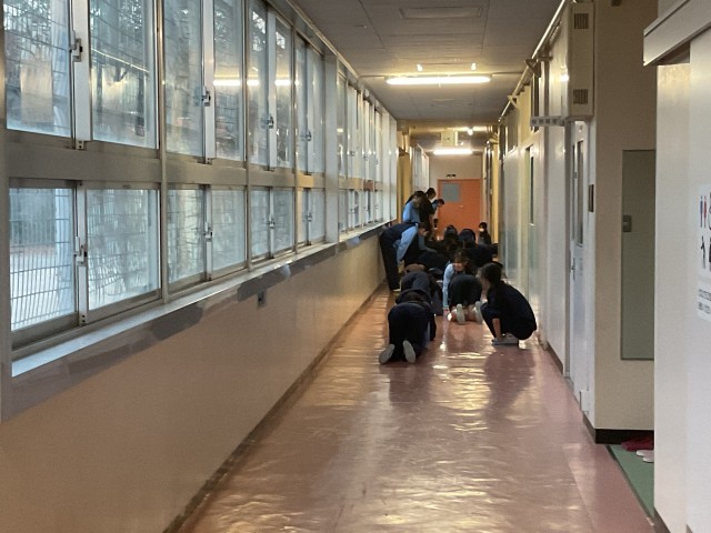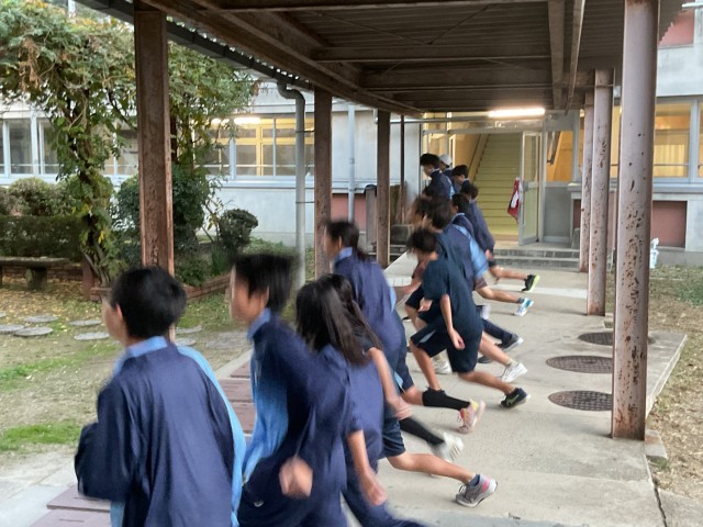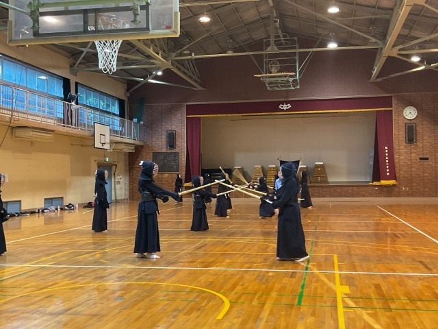 期末テストで、部活動休止期間を終え、放課後の部活動も再開されました。きょうは、雨の影響で、室内でトレーニングを行なっていました。かけ声や応援の声が聞こえてきました。体育館では、剣道部が稽古をしていました。