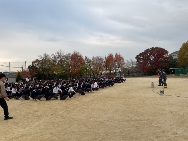 先週、11月27日(木)6時間目終了後、消防署の方にお越しいただき、地震、火事についての避難訓練を行いました。