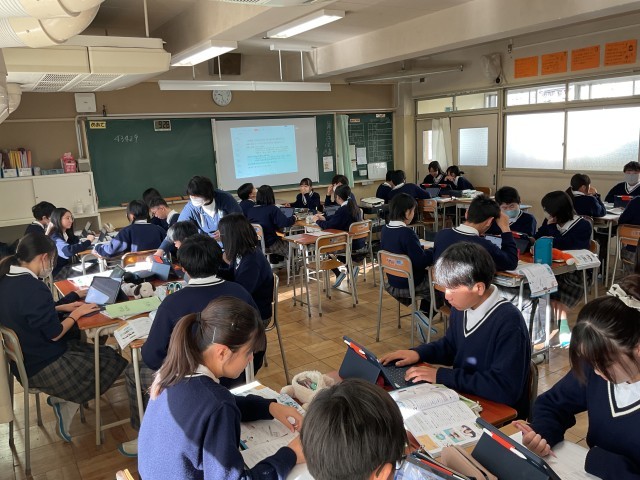理科の授業です。「力のはたらき」についての学習を行なっていました。生成AIを活用しながら、課題に取り組んでいました。