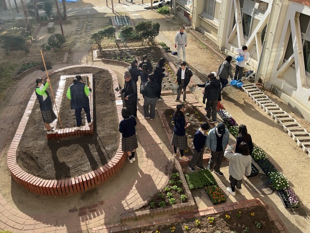 1月23日(金)は、3年生卒業テスト3日目でした。二中での最後の定期テスト、最終日です。落ち着いて最後まで問題に取り組んでいました。3年生なってから、一つ一つの活動について、丁寧に取り組みがたくさん見られます。今週は、寒かったですが、放課後、生徒会の取り組みで、中庭の整備がスタートしています。写真は、1年生が取り組んだ時の様子です。