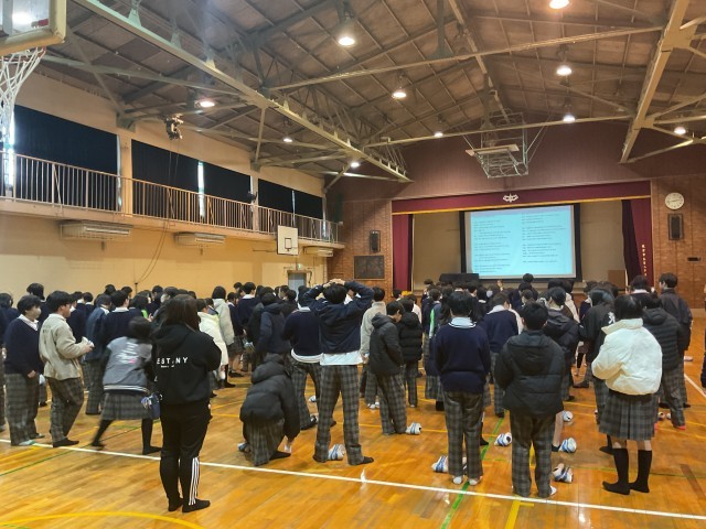寒い朝でしたが、生活委員会のおはよう運動が始まりました。丁寧な挨拶で、1日が始まりました。3年生は、進路、受験について学年集会がありました。静かに、しっかり話を聞いていました。3年生退場後、1年生が体育館で、学年の取り組みを始めました。生徒で企画して、練習を行っています。それぞれの学年で、本番を迎えるにあたっての、準備や心構えを大切に、丁寧に行っていること、さすが二中生徒です。