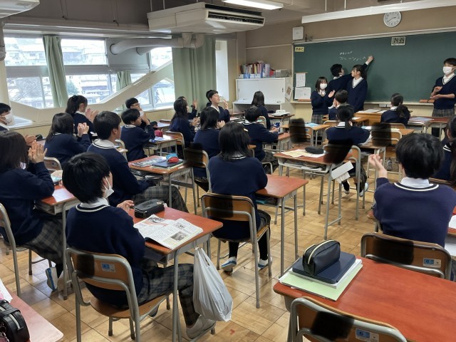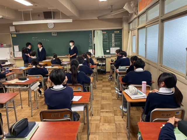 授業後は、掃除時間です。その後、クラスごとに終礼を行います。 1日の良かったこと、改善の必要があることを、皆で共有して、明日に繋げます。 1年生の今日の終礼では、金曜日の学級の時間の過ごし方について、皆で意見を出し合う時間がありました。自分たちで計画をして、実行できるよう、クラスで協力していました。