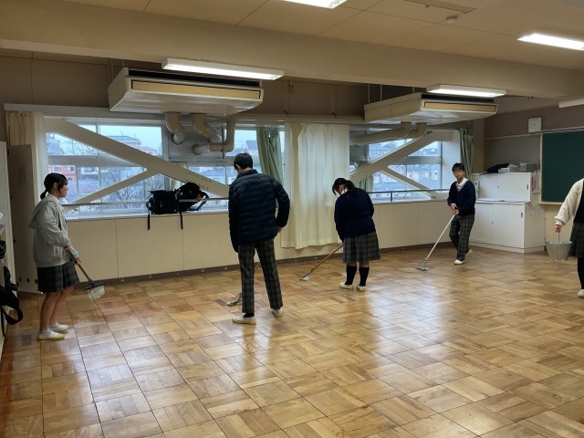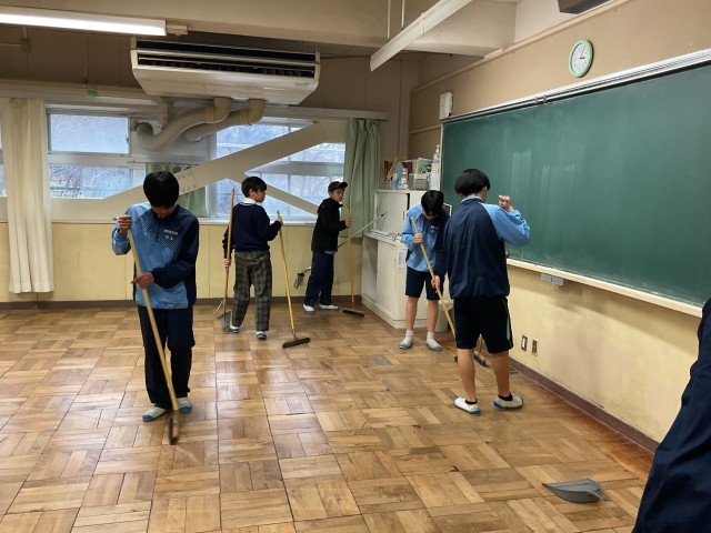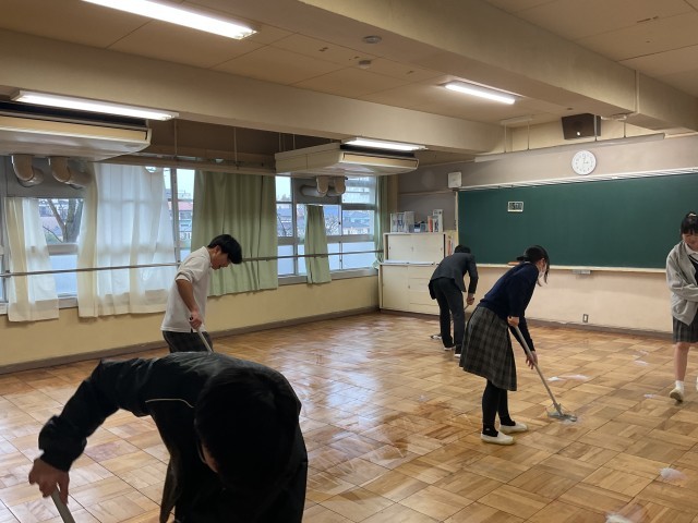 各クラスでのワックスがけがありました。各クラスで、美化委員を中心に、行っています。ボランティアの生徒もたくさんいました。