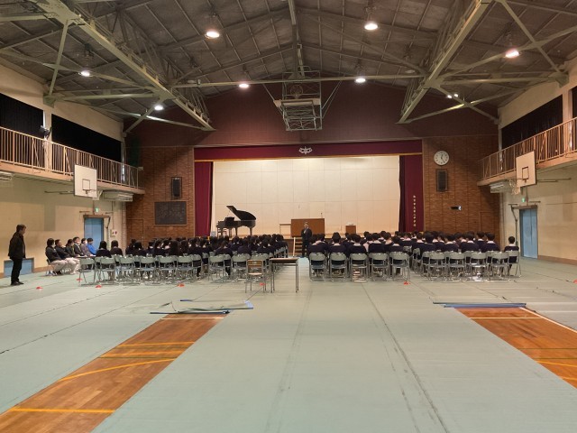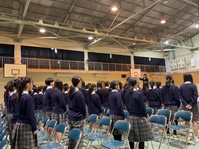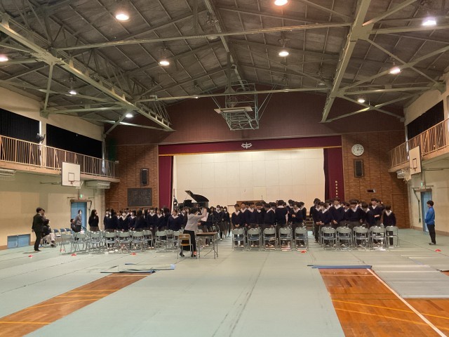卒業式に向けての練習です。みんなで、動作を確認しています。卒業まで、まだまだ、成長が見られる三年生。素敵な二中生徒です。練習の最後は、一緒に学校生活をともにしてきた学年所属の先生からのお話です。先生のお話からも、素敵な毎日と成長が感じられました。
