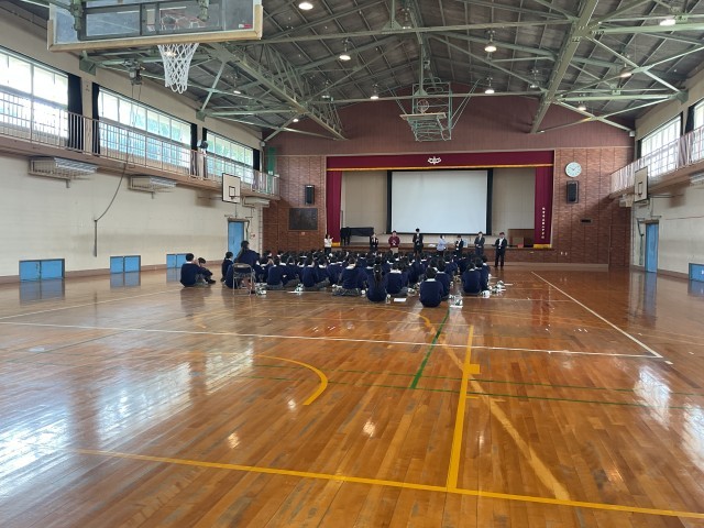 進級して、初めての学年集会です。改めて、どんな学年にしたいのかについて、先生方のお話がありました。1年生は、校内巡りを行なっています。