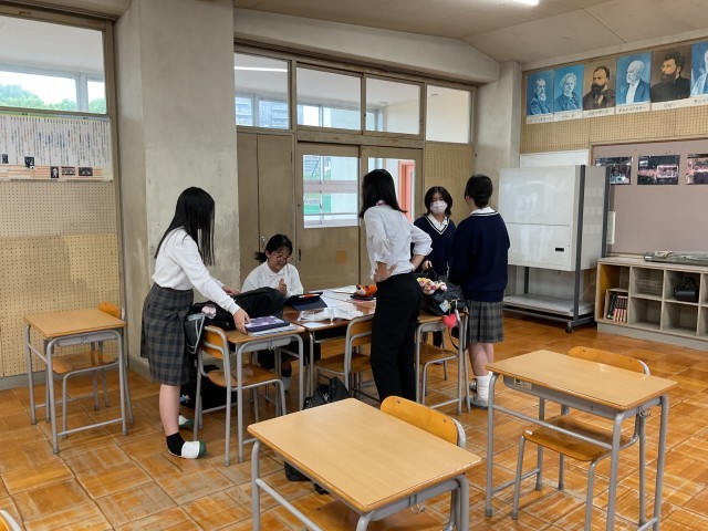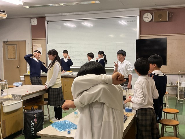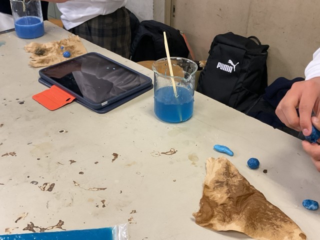 科学部の部活動がありました。スーパーボールを作っていました。1年生も見学に来て、楽しい雰囲気でした。英語部は、NETの先生と、楽しく話していました。
