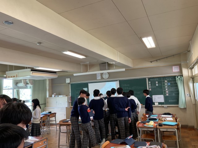 修学旅行に向けての取り組みです。クラスごとで、皆で協力して進めている雰囲気が伝わってきます。
