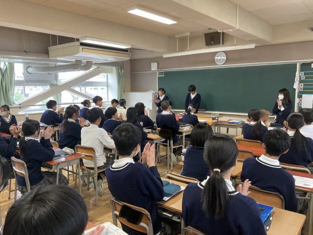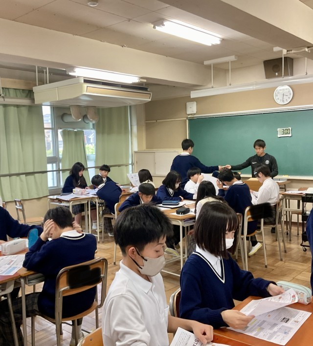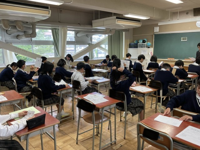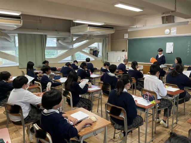 1日の振り返りを行う、終礼の時間の様子です。今日は、月末だったこともあり、学年通信や学校便りの配付があり、予定の確認を行なっていました。1年生のクラスでは、来月の中間テストに向けて、計画的に学習をすること、1週間前は部活停止期間になることなどの説明を担任の先生が行っていて、真剣に話を聞いていました。3年生のクラスでは、良かったこと、嬉しいことなどクラスで共有していて、とても和やかな雰囲気でした。