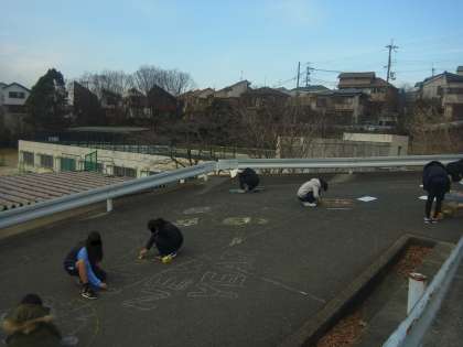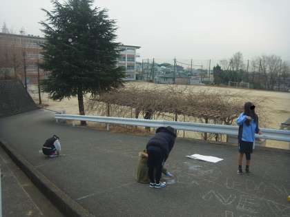 になってもらいたいと、美術部の生徒たちが、校内の路面にチョークで