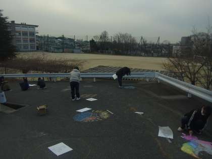 (1月5日火曜日)美術部の生徒たちによるチョークアート