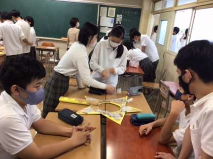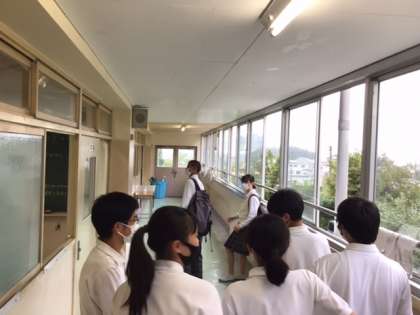 10月1日の二中祭文化の部に向けて、各学年、クラスで準備が進められています。3年生は、各クラスで映像作品を作ることになっています。今日の準備の様子を覗いてみると、教室では何やら制作中です。ずいぶんできてきているようです。そして廊下では、これは役者を撮影しているようです。どんな作品が出来上がるか、楽しみです。