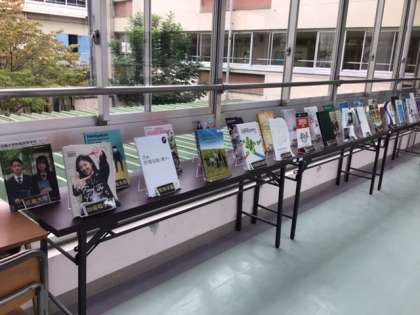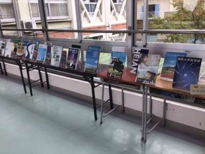3年生の教室に向かう渡り廊下には、たくさんの高校のパンフレットが展示されています。3年生では、パンフレットレンタルフェアとして、このパンフレットを自由に借りて行ってもいいことになっています。家に持って帰っても構いません。ただしあくまでもレンタル、ですから、約束は次の日に返却すること、絶対に無くさないこと、です。進路希望調査も始まって、いよいよ進路を考える時期がスタートしました。これから生徒たちは学校行事にも取り組みながら、進路を考えていきます。