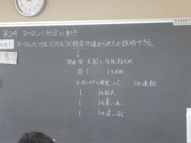 授業のめあては、「ヨーロッパでは、どのように統合が進められたか説明できる」です。