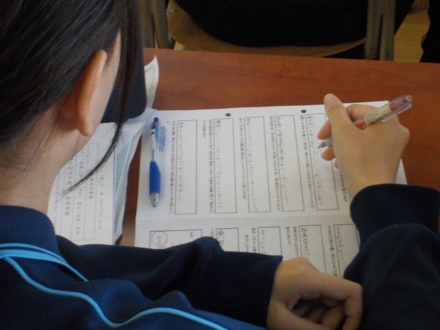 生徒の皆さんも教員からの説明を受けて、学習プリントにきめ細かくまとめています。