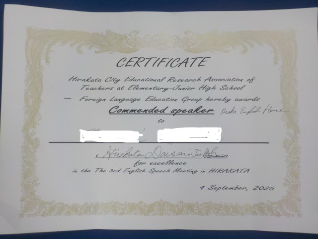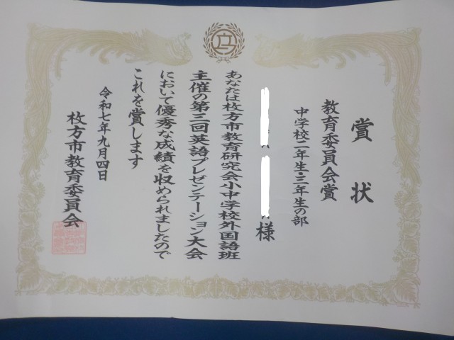 10月3日(金)第3回 枚方市英語プレゼンテーション大会 表彰