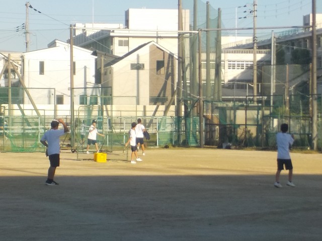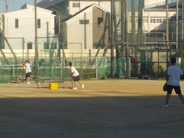 ボールを投げる生徒も打ちやすいように気を配っているようです。