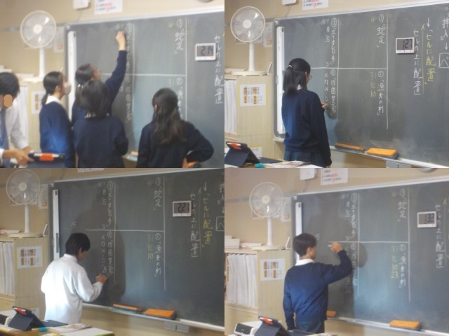・班での交流・発表では、スムーズに進行させるために「生徒の名前の50音順」で説明させるなどの仕かけが見られた。
