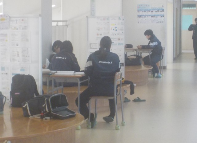 このスペースでは、昼休みや放課後などをつかって、自主的に学習に取り組む生徒がいます。