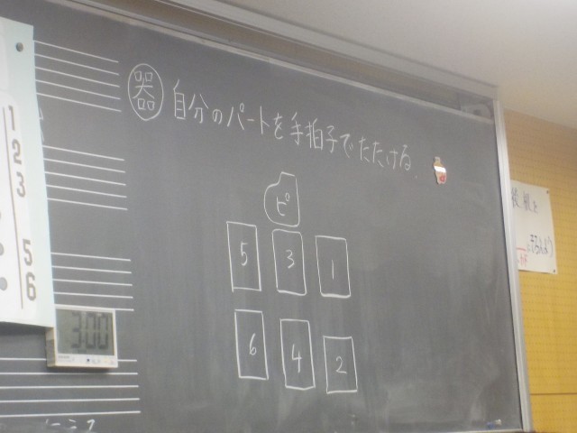「自分のパートを手拍子でたたける」が授業のめあてです。