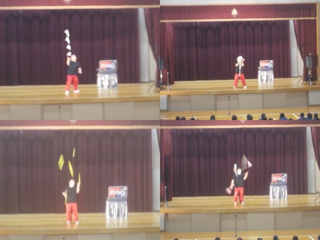 この時間は、在日三世の世界的パフォーマーの ちゃんへん氏を講師としてお招きし、世界大会で優勝されたジャグリングの技術を披露していただきました。