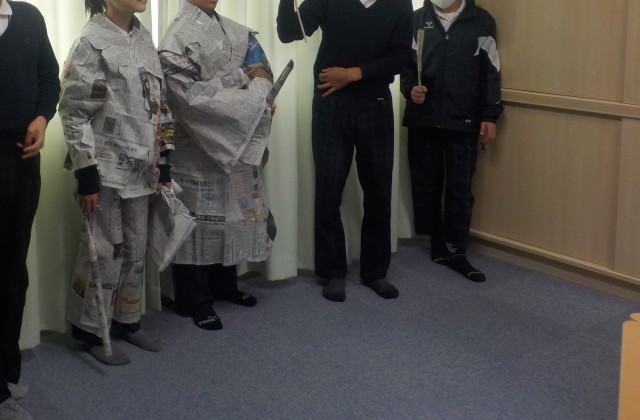 ・新聞を活用して、衣装を作らせる視点がすばらしい⇒斬新な視点で達成感を味わうことができる。