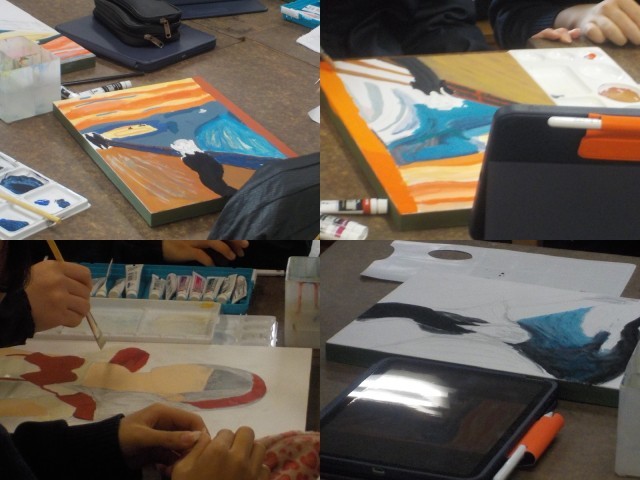 今日の授業のめあては「選んだ絵画を忠実に再現しながら着彩する」です。