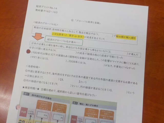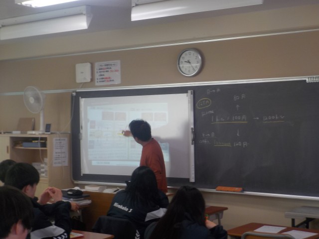 「グルーバル経済と金融」をテーマにした授業で、円高や円安の定義や影響などについて、調べ学習や交流などが行われました。
