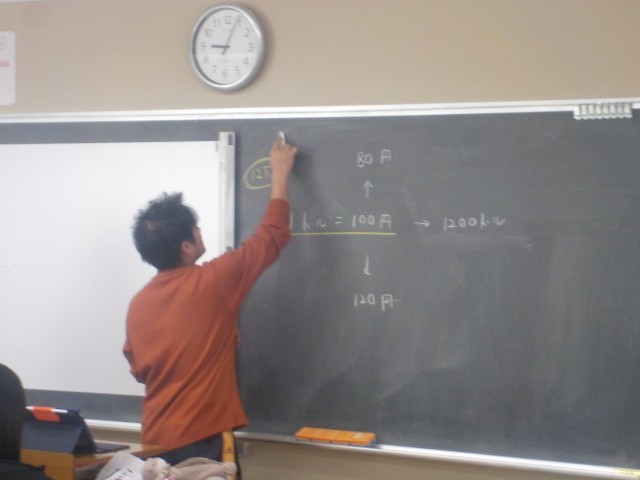 ・授業の冒頭に「円安 円高」について、それに伴う計算についてなど、本時の取組を明確に伝えていた。