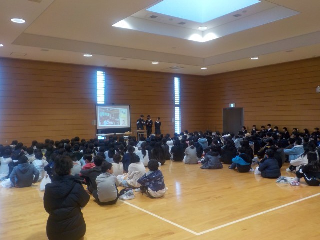 一日の学校生活の流れ、各教科の説明、学校行事など、ていねいな説明が行われ、先生についてのクイズや小学校からの質問の答えるなど、楽しい工夫も見られました。