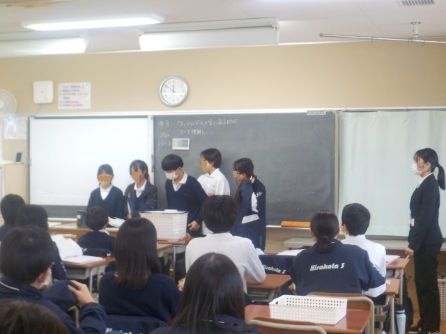 ・上記の教科書で学んだ内容をさらに深めさせる取組として、いくつかの設問が用意され、じっくりと考えさせていた。