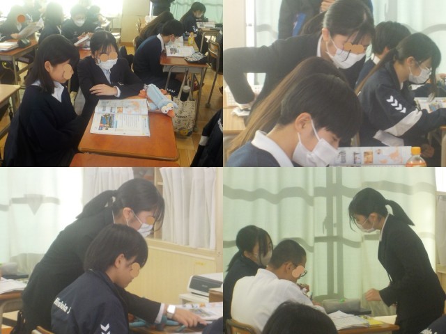 ・教員の説明⇒生徒の取組⇒生徒の交流⇒教員の個別指導など、生徒の集中力をとぎれさせないように、いろんな活動場面をテンポよく行わせていた。
