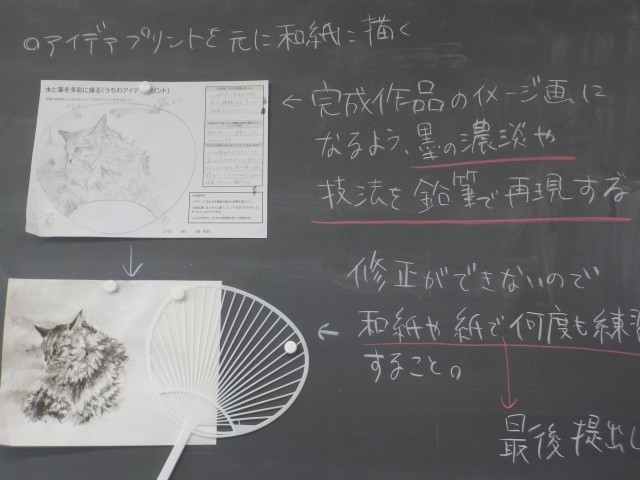 水と筆を多彩に操る、うちわアイデアプリントの取り組みです。