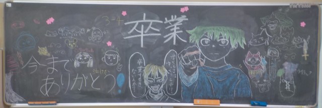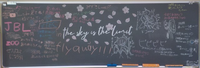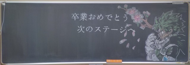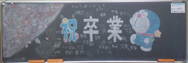 廊下から黒板を見ると、クラスごとにメッセージが残されていました。