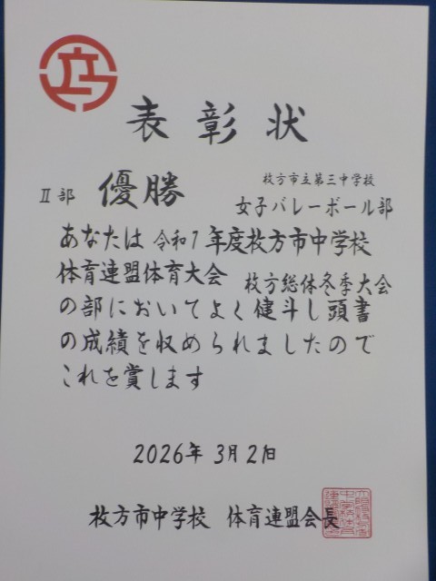 枚方総体冬季大会 Ⅱ部 優勝