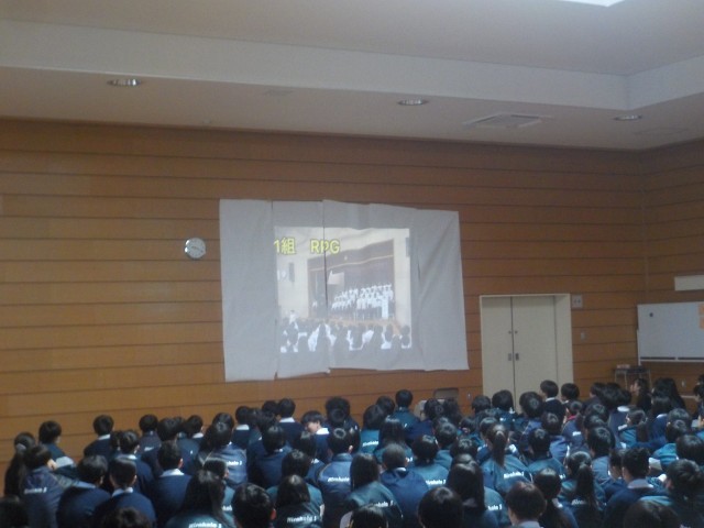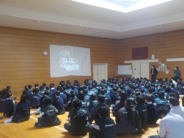 武道場での2年生の学年集会の様子です。