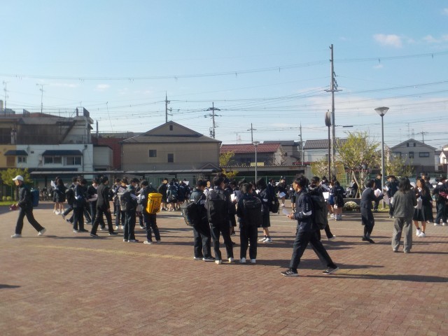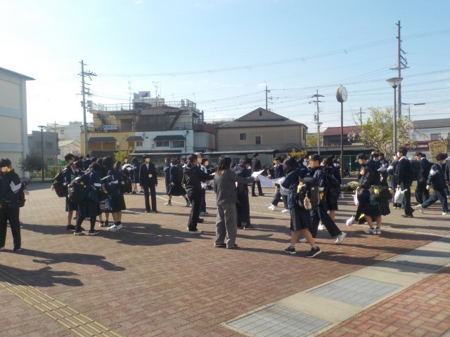 今日は、早朝から生徒会役員の皆さんが、校門前であいさつ運動をするなる中、2.3年生のクラス発表が行われました。