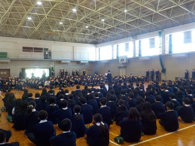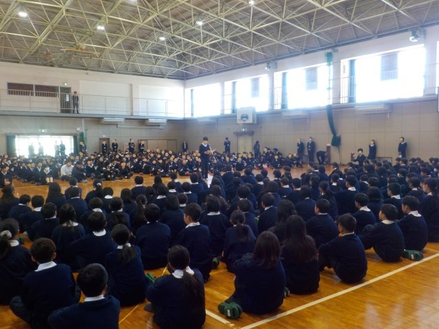 在校生代表生徒(生徒会副会長)の歓迎のことばと、新入生代表のあいさつにより、エール交換が行われました。