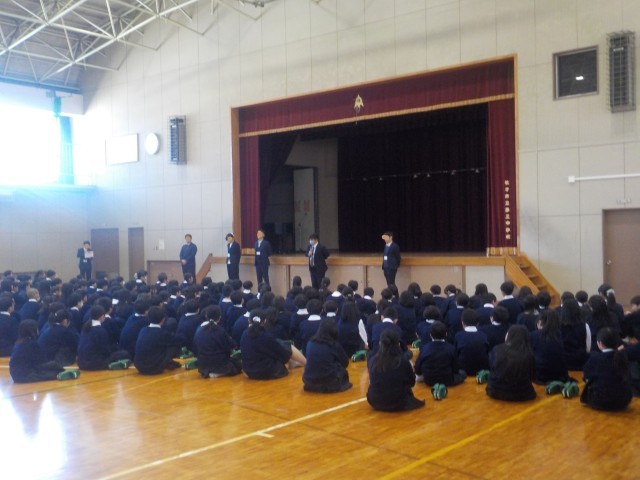学年主任、生徒指導担当、学習担当、支援担当などからの話があり、最後は学年担当の教員が一人ずつ、自己紹介を行いました。