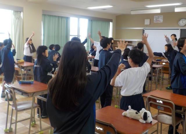 担任の教員と生徒の皆さんが、いろんな話題に対して、じゃんけんでコミュニケーションを図っています。