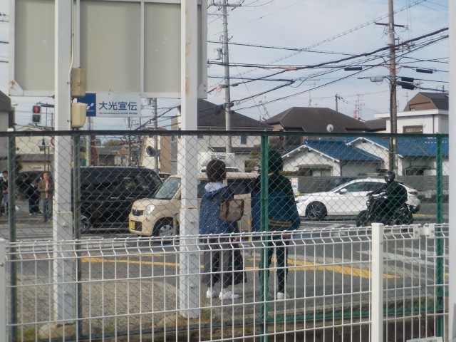 ※写真下は、三中前の交差点で生徒の皆さんを見守る教員の様子です。
