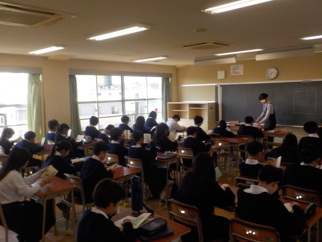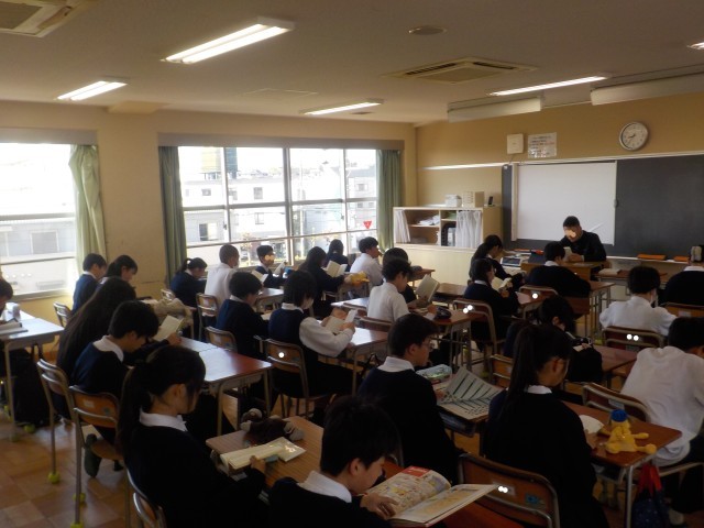 登校後、各クラスで出席確認が行われ、その後、すぐに朝読書に取り組みます。