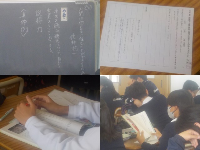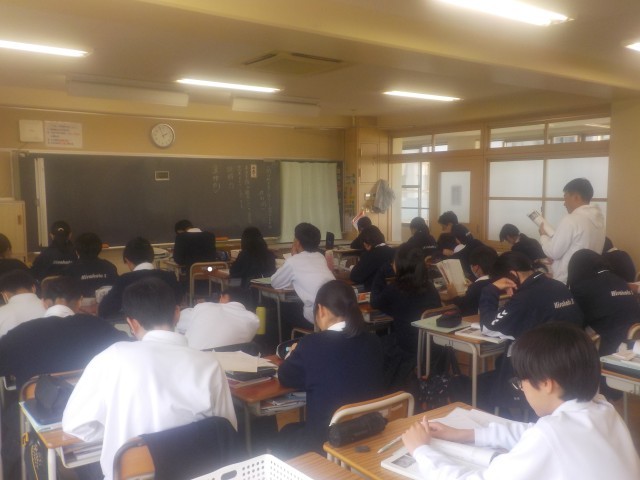 教員がじっくりと読み込み、生徒の皆さんは、文章を目で追いながら、理解を深めていました。