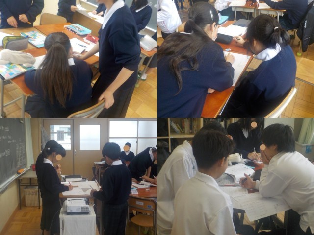 教室内を移動して、活発な交流活動が行われています。(写真下)