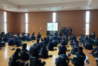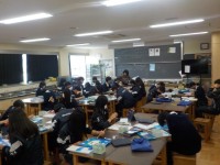 1年4組の国語の授業です。「朝のリレー」の詩を、情景をイメージしながら内容に対する考えを深めていました。グループで考えを出し合ったあと、全体で発表していました。