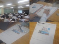 3年5組の数学の授業です。計算問題の小テストの後、二次関数を利用した問題に取り組んでいました。みんな積極的に聞き合っていました。