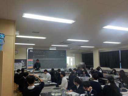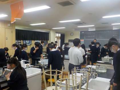 説明が終わると、一斉に立ち上がって、実験開始です。(写真中)